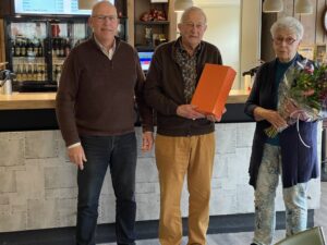 Bij terugkomst in de kantine troffen we Leo Tijssen aan, die al snel het woord tot Marianne en André richtte en hen èn ons feliciteerde met de 50e Eeuwige Roem. En het bleek ook echt de 50e keer te zijn. Namens het bestuur overhandigde Leo een klein presentje en een bos welriekende bloemen. Uiteraard ging dit gepaard met een oorverdovend applaus van de toehoorders.